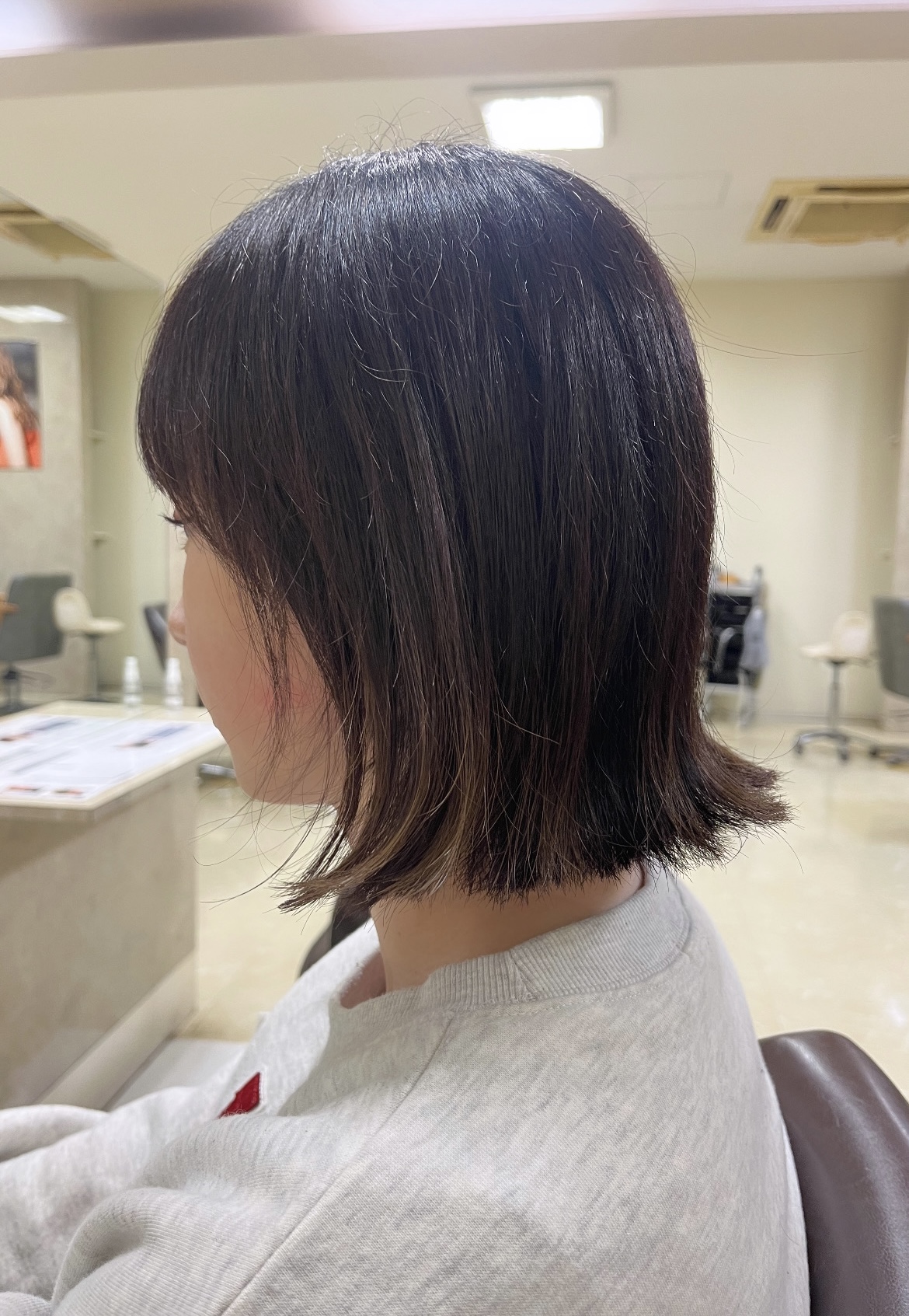 おはようございます!アシスタントの石田です^_^後ろから見てもプツッと感のあるボブです。トレンド感があって可愛いです☆