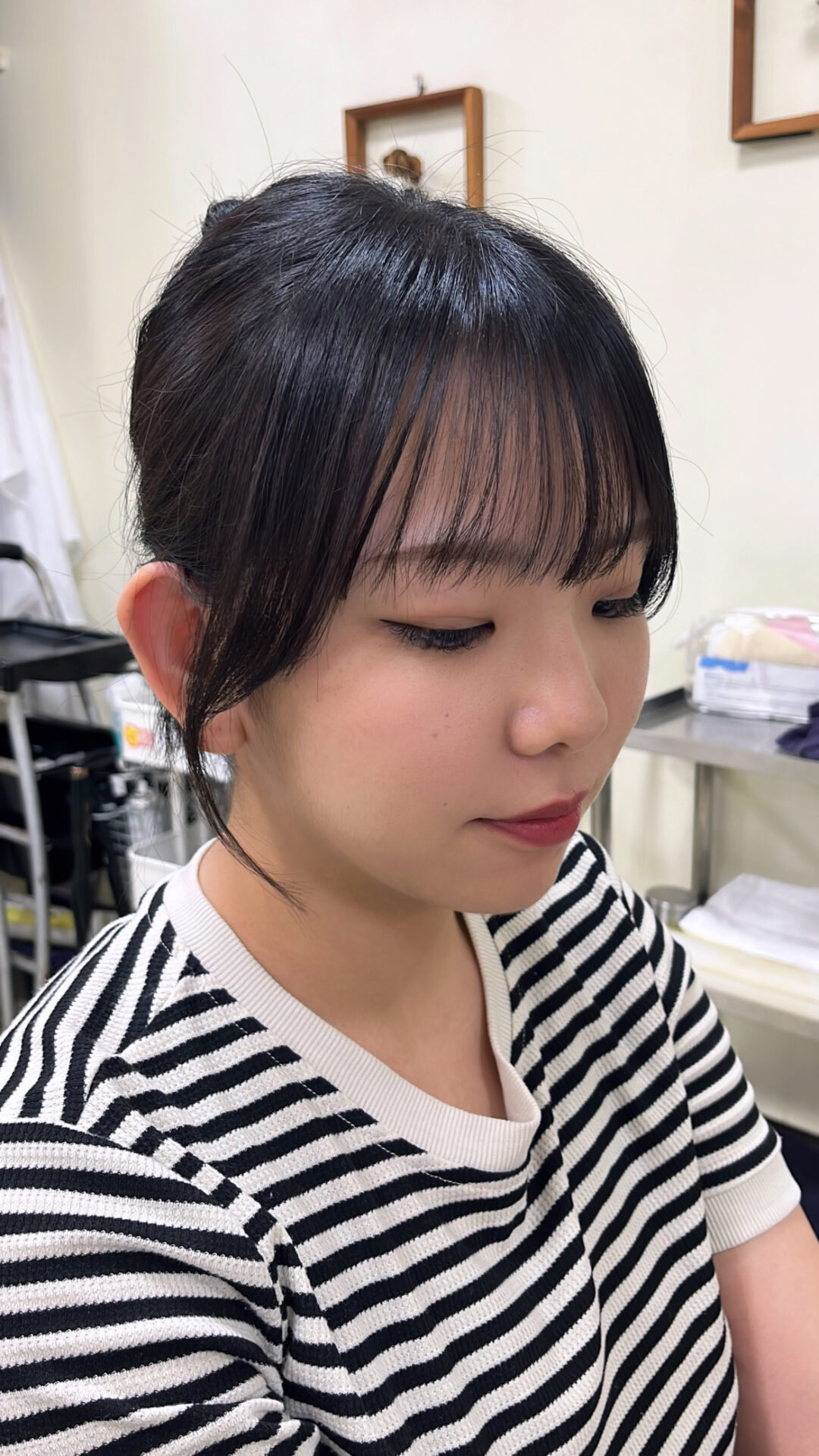 おはようございます!アシスタントの石田です^_^顔周りに少しレイヤーを入れることで小顔効果と可愛さをだすことができます☆