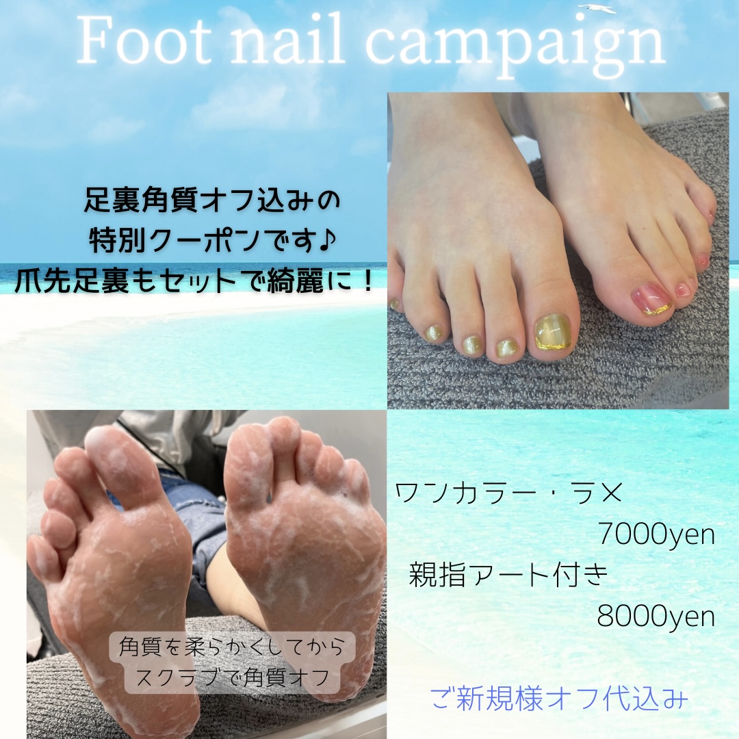 フットネイル&足裏角質ケアがセットになったお得なクーポンのご案内です✨