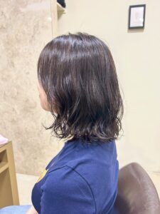 朝はムースをつけてスタイリングするだけで、しっかりパーマが出てキープ出来ます! 肩くらいの長さがスタイリングもしやすく1番オススメです!