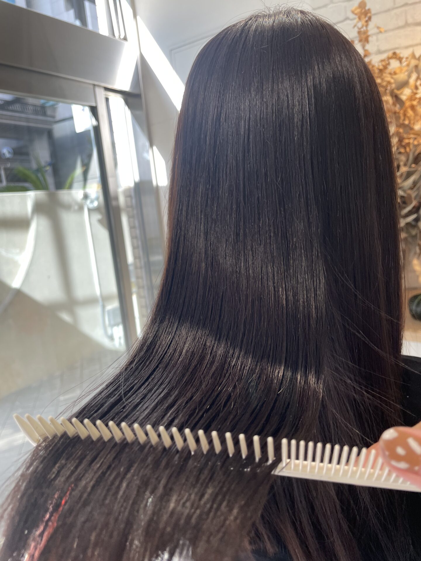 ここをまず酸性ストレートやアルカリストレートで施術した後に髪質改善トリートメントをすると相乗効果ですごく扱いやすく、トリートメントも長持ちするようになります♪