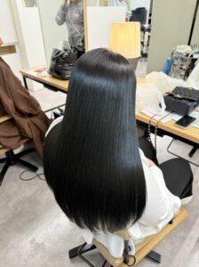 カラーの中にトリートメントと混ぜて塗ることによって髪の毛にもやさしく色入れて髪にサラツヤ髪を与えてくれます!
