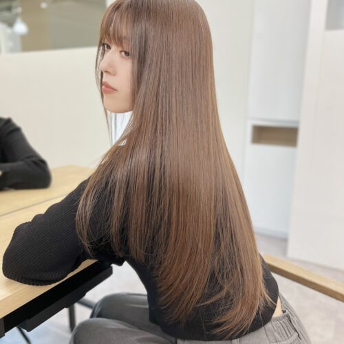 こんにちは!スタイリストの西本です! やわらかい質感と透明感のあるミルクティーカラー ブリーチ1回でここまでダメージを抑えながら、ツヤと抜け感をだしてくれます! 重く見えやすいロングも、光に透ける柔らかベージュで軽い印象 […]