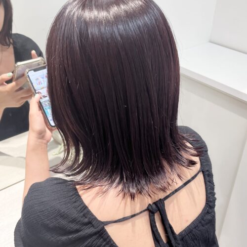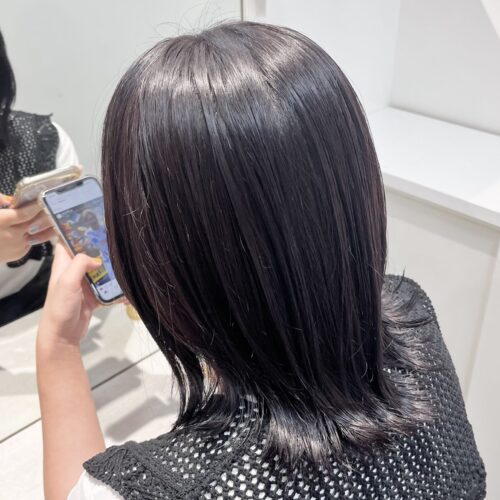 こんにちは!アシスタントの八尾です 今日はツヤ感暗めカラーのご紹介 暗くしたいけどツヤ感がほしい方は暗めの紫がおすすめです 太陽光の下と室内で見え方が変わるので、その変化も楽しめます! ぜひお試しください♪