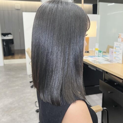 こんにちは!アシスタントの山内です! 今回はブルーブラックをご紹介します!! 就活や実習などで暗くしないといけない、黒染めはしたくない方とてもおすすめです! 色落ちも自然なので綺麗です! 是非お試しください!