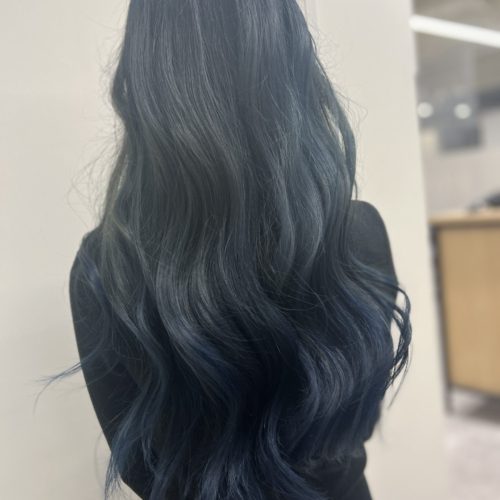 こんにちは!アシスタントの西本です! ブルーアッシュで染めています!しっかり濃いめに色も入れているので色落ちも早すぎず楽しめるなと思います! ぜひ一度お試しください!