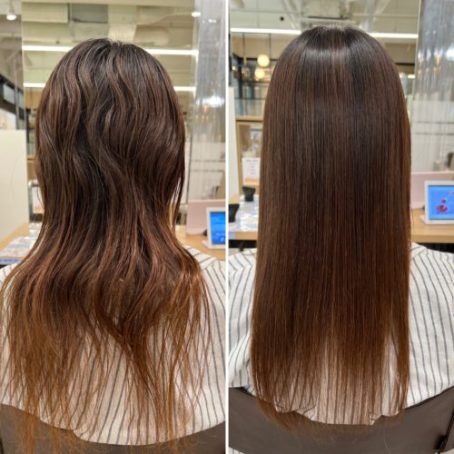 こんにちは。 CARE神戸店トップケアリストの津村です。 梅雨空けはしましたが、 スタイリングしにくい髪に縮毛矯正はいかがでしょうか? 左は施術前、右は施術後になります。 ダメージを極力減らす薬剤選定から、シルクプレート […]
