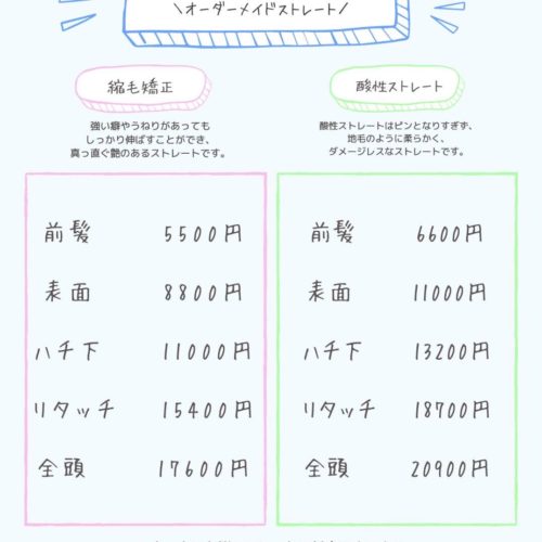 こんにちは!アシスタントの松浦です! 今日は梅雨対策のキャンペーンをご紹介します! 気になる部分のストレートを組み合わせて 行えるオーダーメイドストレートを始めました! ストレートをされた方にはサブリミックトリートメント […]