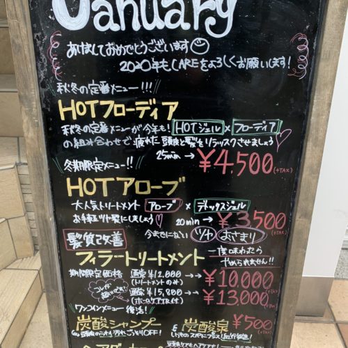 こんにちは☆近藤です。 今年最初のキャンペーンはこちらになっております!! まだまだ寒い日が続きますので、是非CARE心斎橋店のHOTメニュー、スパで癒されに来てください☆ 皆さま本年も何卒宜しくお願い致しま […]