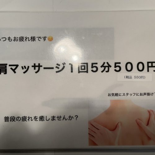 こんちには、アシスタントのシモカワです! 本日は、梅田店のあまり知られていないメニューで、【 5分間肩マッサージ 】というメニューがあります! 1回500円とお手頃価格になっております! 普段マッサージ店に […]